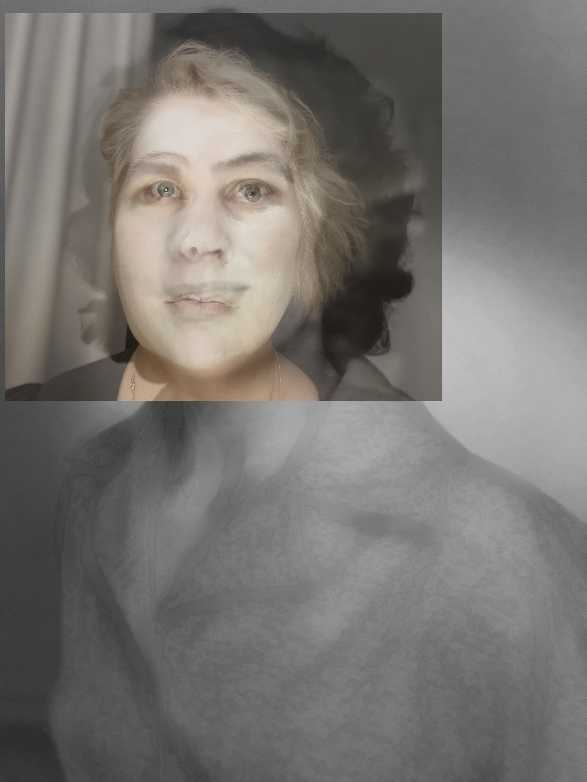 “Jäljet minussa”, “Traces in Me,” is a pair of photographs portraying the imprints that parents leave on their children. The inspiration for these works came from old photographs of my parents, Eeva and Pertti. I can see my father’s physique in the high cheekbones, which can be traced back to a touch of Inuit genetic heritage. This is a memory of the migration of people across the Bering Strait during the time of the ice cap. Within me, the strong genetic ties to Pohjois Savo come to life, a group that migrated from Jääski’s keep across the waterways of Saimaa to Tervasalo in Pohjois Savo, Vehmersalmi, where they settled in the 1560s. From there, the longing for traveling on water has been inherited, which led my father to the sea when he was young, and in no time, he embarked on many trips around the world. On the other hand, I have inherited my mother’s wavy hair and a touch of southwestern Finland, which is also linked to the genetic groups of Eastern Finland and Russia (Karelia and Vyborg).